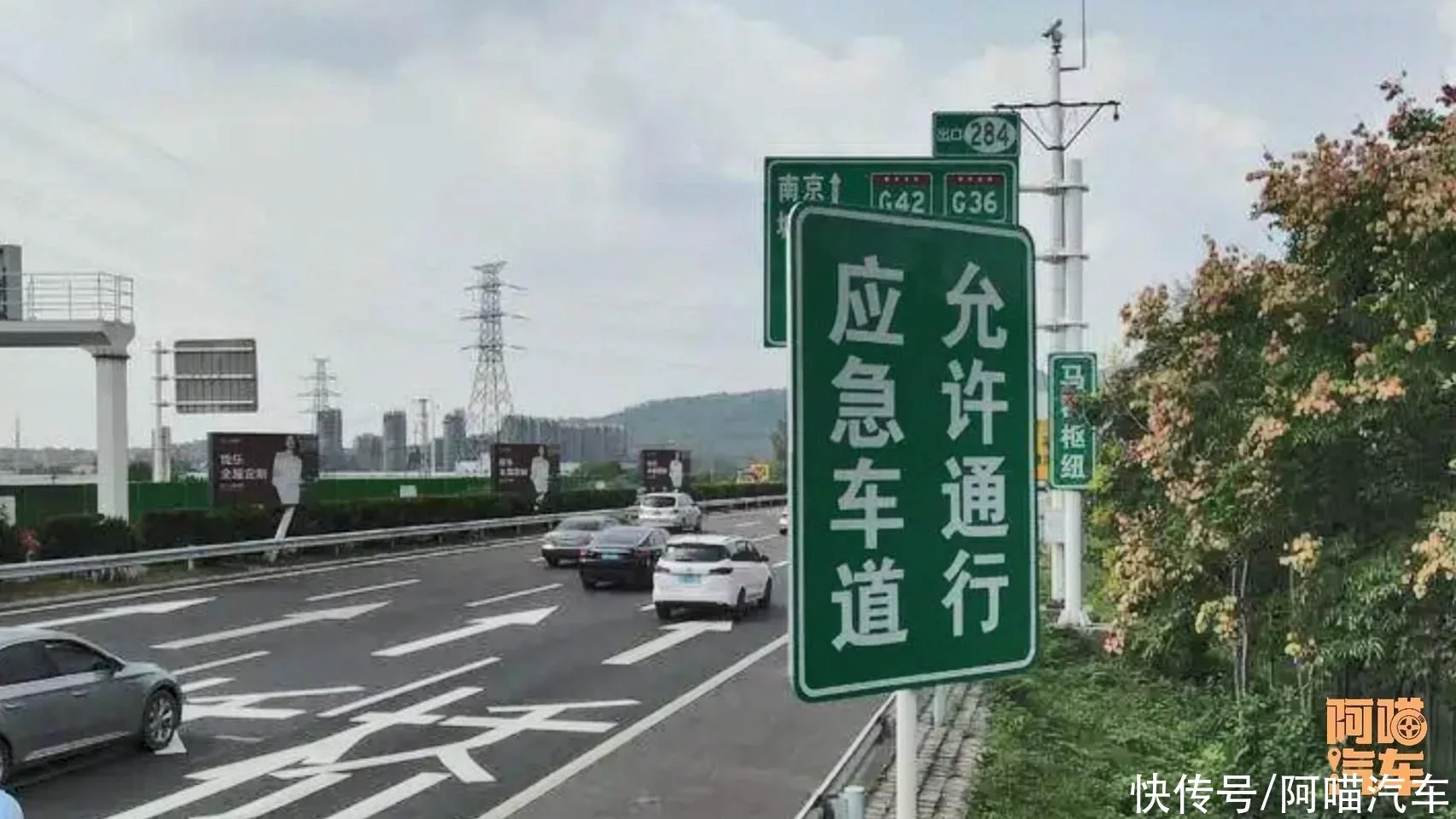 高速公路上,在旁边竖了个牌子,写着让你走应急车道。