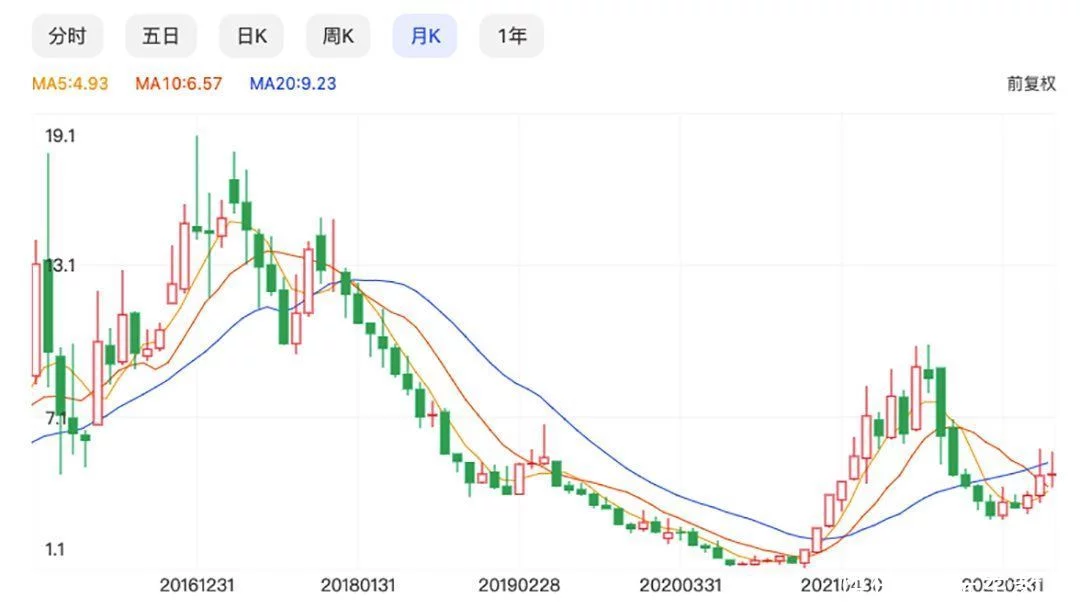 同期的长安汽车,只有7.36元/股,要知道它当年销量可是达到166万辆,深耕商用车市场而乘用车表现也同样不错。