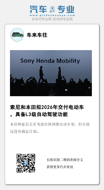 索尼还将提供传感器和其他技术,使车辆具备L3级自动驾驶系统,从而使驾驶员能够更多地关注车辆提供的内容和软件服务。L3级自动驾驶系统允许驾驶员在特定路段无需操控方向盘,但需要准备好随时接管车辆的控制。