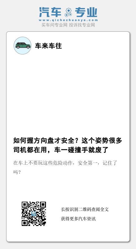 所以我不论你是单手也好,三九点也好,一指禅也好,两只手放在上沿,绝对是所有握方向盘里面,最危险的一个姿势。