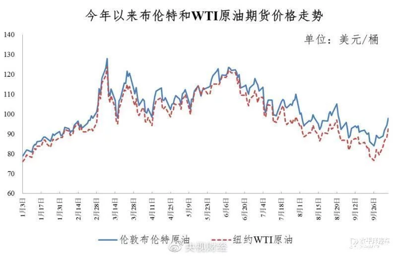 截至10月15日收盘,纽约商品交易所11月交货的轻质原油期货价格下跌3.50美元,跌幅为3.93%,收于每桶85.61美元;12月交货的伦敦布伦特原油期货价格下跌2.94美元,跌幅为3.11%,收于每桶91.63美元。