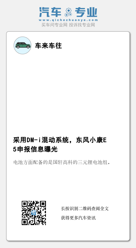 近日,我们从工信部公布的最新一批申报目录中发现了东风小康E5车型的申报信息。