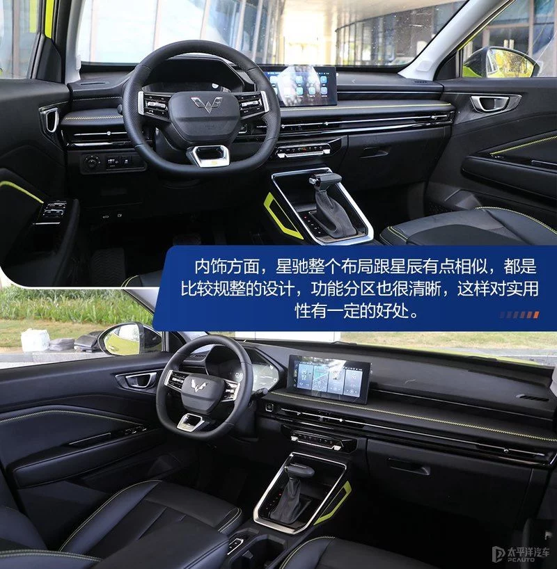 内饰方面,新车的布局和星辰有些相似,都是比较规整的设计,同时采用一体式运动座椅,加上不同颜色的色彩搭配,十分的富有新意。