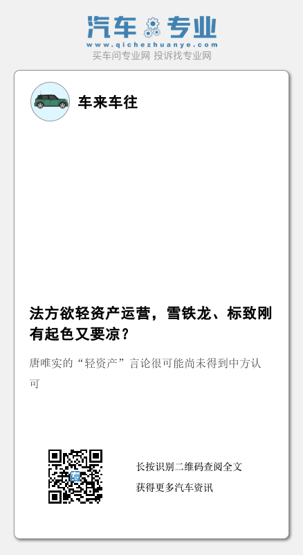 这也让坊间认为,唐唯实的表态或许意味着该集团可能会停止标致、雪铁龙在国内市场的生产,让刚刚见到复苏希望的神龙汽车再度陷入停产风波。