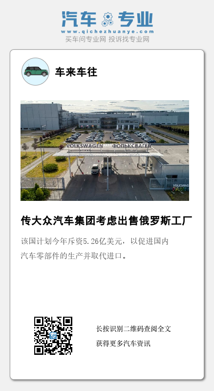 俄乌局势升级后不久,大众汽车集团已停止在俄罗斯的生产和销售。该集团还结束了与俄罗斯汽车制造商Gaz的合作关系,后者作为合同制造商在莫斯科东部的下诺夫哥罗德小型装配厂生产一些大众车型。