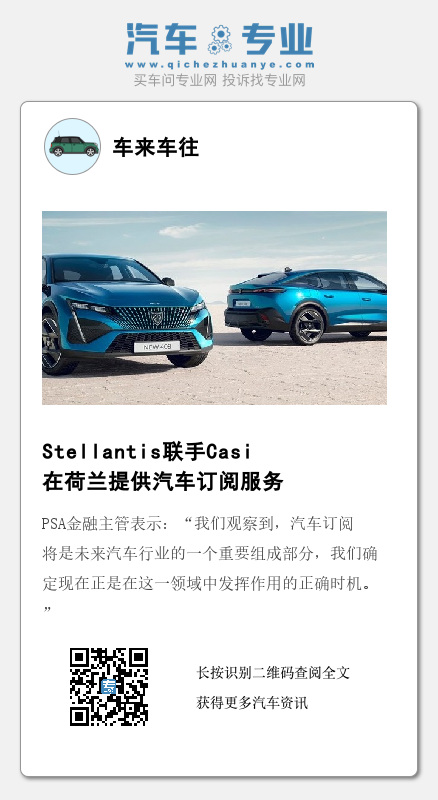 Stellantis旗下PSA金融主管Sophieke Verhoeven表示:“我们观察到,汽车订阅将是未来汽车行业的一个重要组成部分,我们确定现在正是在这一领域中发挥作用的正确时机。”