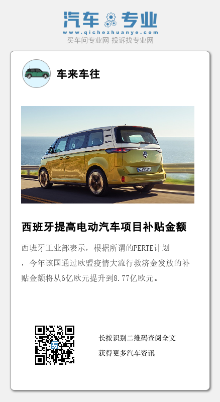 据外媒报道,西班牙政府将在为电动汽车项目提供支持的第一阶段向投资者提供比此前计划中更高的资金,补贴范围包括电动汽车与电池。此外,该国还表示,将寻求与大众集团合作,在此之前有报道称,这家德国汽车制造商曾威胁称将放弃在西班牙建厂的计划。