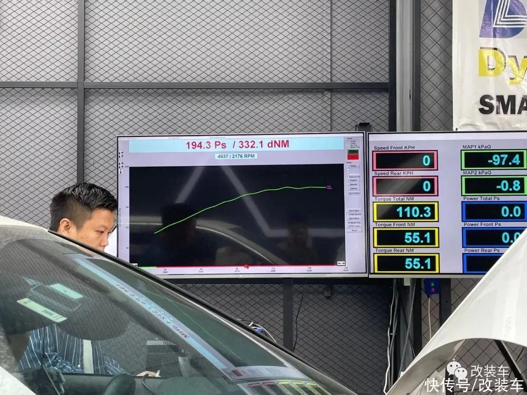 "赛道回来没多久,又给它换上了个BMC高流量空气格,写入了一版SD一阶特调程序,经过特调后有着轮上194匹马力、332牛·米,还算是个不错的数据。"