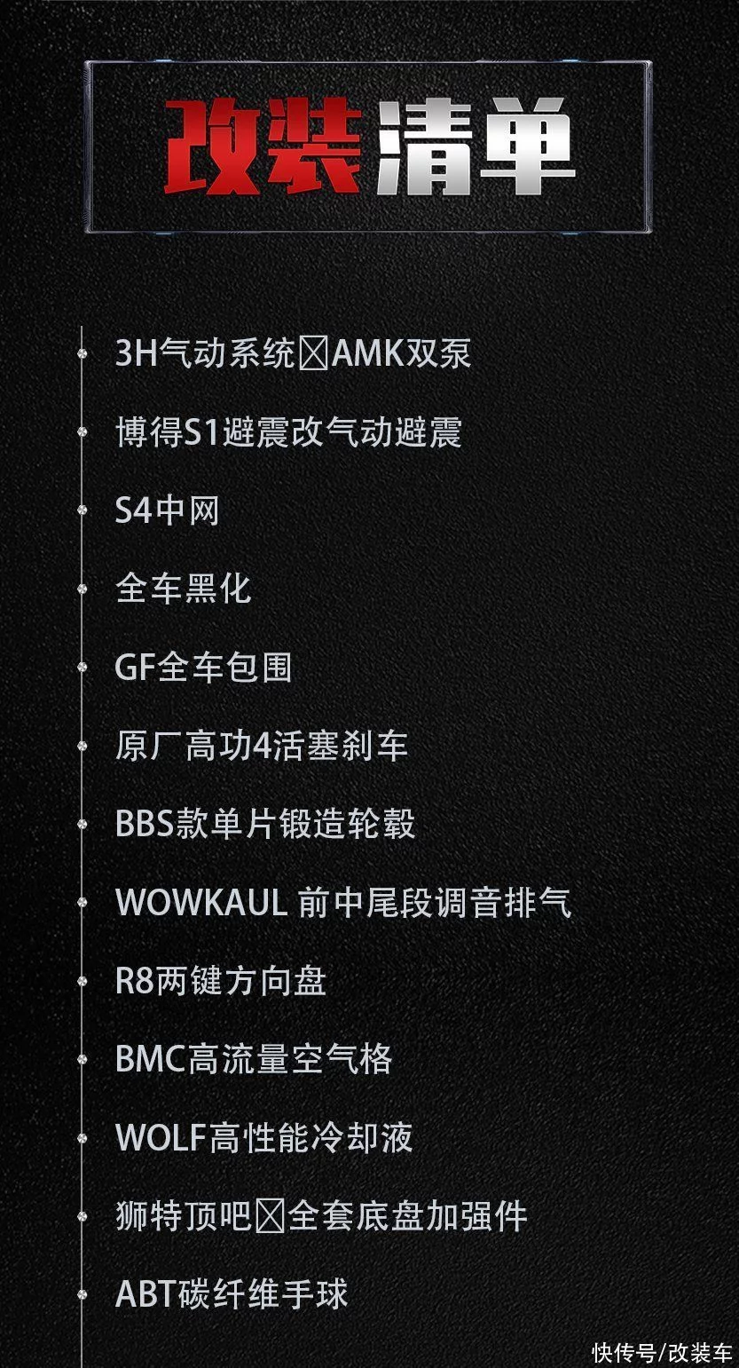 "拥有这辆车后,让我认识了一群志同道合的车友,还成立了一个奥迪俱乐部。最重要的是感谢我女朋友一路以来对我玩车的支持,这套气动就是我美丽、漂亮、善良、大方的女朋友送的!"