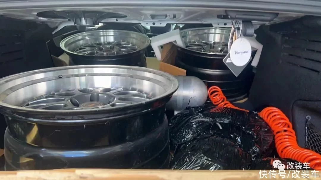 "避震换了、电脑也写了,轮毂还是原厂就有点过分了。于是就换上了一套19寸宏鑫锻造G025款轮毂。"