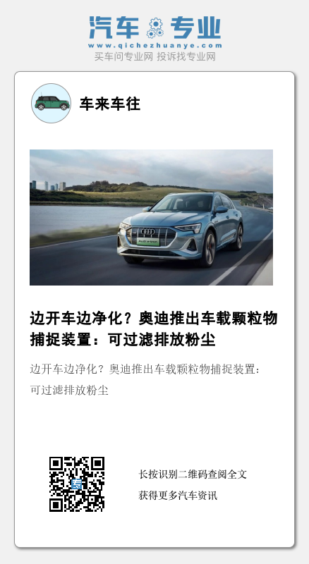 不得不说,无论奥迪出于何种原因要将燃油车的颗粒物捕捉装置“搬”到智能电车的车头上,这种净化空气的概念还是值得赞扬的,毕竟爱护环境人人有责。而从现实角度来说,无私奉献的人往往不会占大多数,在没有相关政策补贴的情况下下,车主都不会主动选择安装这样的装置,车企要用户掏自己的钱净化城市的空气,可行性不大。