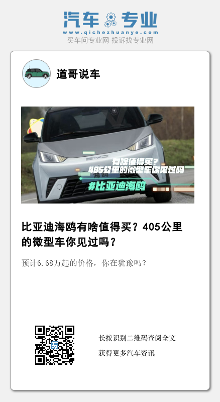 一提起微型车,都在为续航担忧,比亚迪神笔天来,让续航不再担忧,让我们一起来看看比亚迪海鸥。