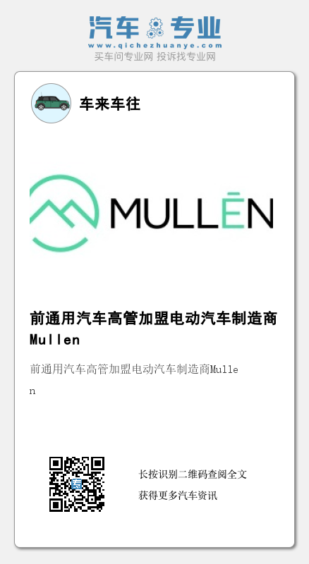Schwegman在一份声明中表示,对于自己新的角色他感到非常期待。他说道:“Mullen的战略给我留下了深刻的印象,包括其投资组合、工厂和进入市场的速度。Mullen的战略,加上我在商用车领域的经验,以及与车队和经销商的良好关系,将让我们可以建立一个非常具有竞争力的商用电动汽车业务。”