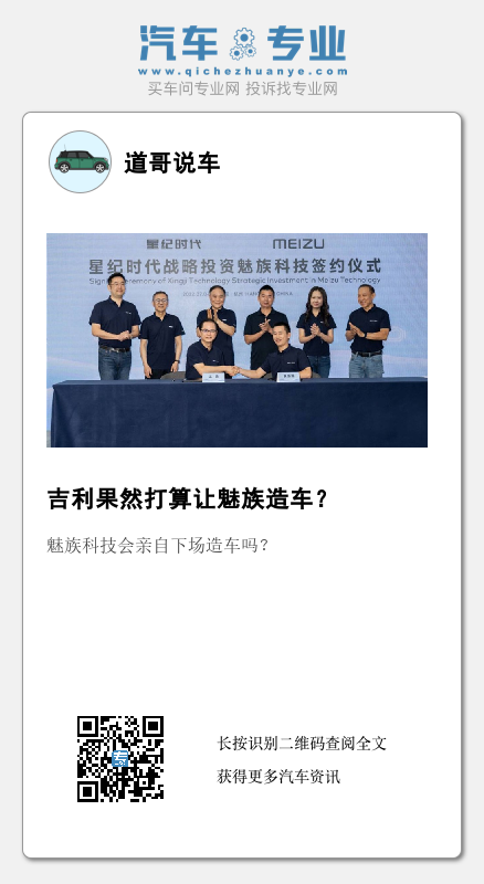 【文/道哥说车 听风吟】今年7月,吉利旗下的星纪时代与魅族科技在杭州举行战略投资签约仪式,正式宣布星纪时代持有魅族科技79.09%的控股权,并取得对魅族科技的单独控制。按照当时的说法,双方将携手致力于为用户提供多终端、全场景、沉浸式融合体验的核心产品。