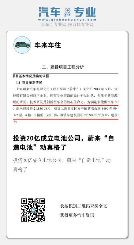 从投资2亿元建电池研发实验室到投资20亿成立电池公司,蔚来“自造电池”的决心逐渐显露。