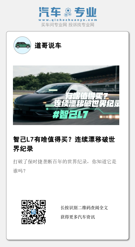 这可能是你没有听过的车,但它连续漂移1小时6分钟、258圈、43.646公里打破了保时捷垄断百年的世界纪录,你知道它是谁吗?让我们一起来看看智己L7.