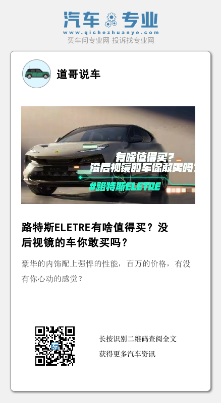 看到名字的时候,你会不会感到一阵迷茫,这是什么车,没听过啊,那请跟随我的步伐走进路特斯ELETRE。