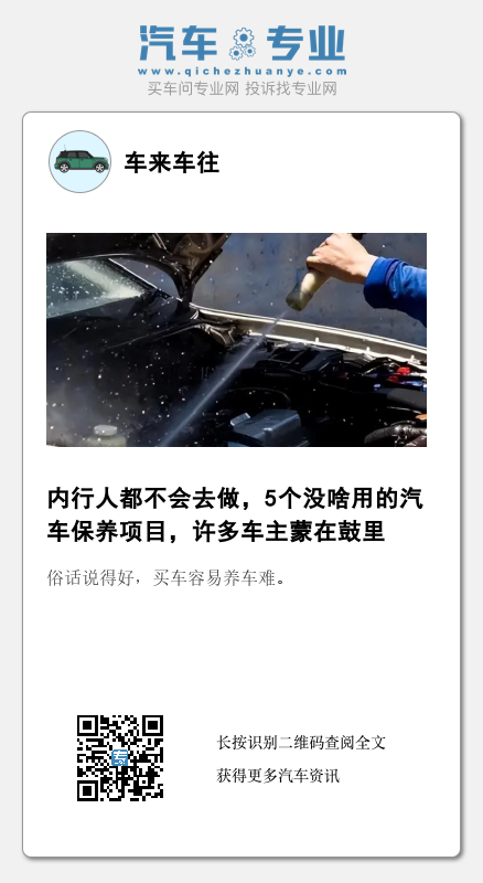 这就导致很多朋友,花钱做了一些没啥用的保养项目,比如下文中的5个汽车保养项目,不仅费钱,还没效果!