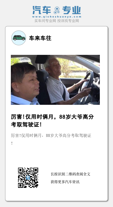 厉害!仅用时俩月,88岁大爷高分考取驾驶证!