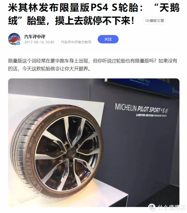 除了静音棉,买之前看到这款轮胎的另一个特色是“天鹅绒胎侧工艺”,说人话就是利用特殊工艺让轮胎看起来更亮更有光泽感,楼主仔细观察了一下这款轮胎与其他轮胎后感觉胎面确实要更有质感。据我所知,是米其林率先用上了这种工艺,之前给PS4 S这款运动型轮胎用,连米其林这种百年品牌都要把天鹅绒当做限量版来发售,想必还是相关的生产制造成本太高的缘故。