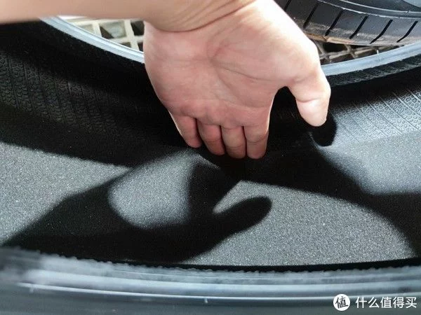 前面提到了这款支点静力Statics S1静音轮胎内置了静音棉技术,这也是楼主选择它的主要原因,楼主着重看了一下他的静音棉,在下面的图片中可以看到静音棉的厚度已经超过了一节手指,目测在2~3厘米左右,看的出厂家还是很厚道的。