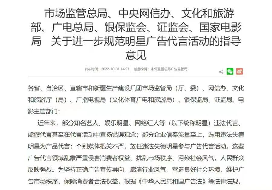 近日,市场监管总局会同中央网信办、文化和旅游部、广电总局、银保监会、证监会、国家电影局等七部门联合印发《关于进一步规范明星广告代言活动的指导意见》(以下简称《指导意见》),《指导意见》自公布之日起实施,其中对汽车产品的代言做出了要求。