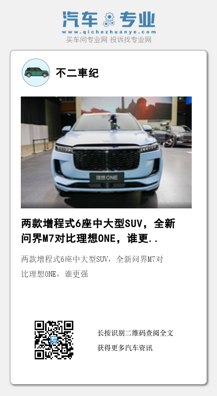 在这竞争激烈、你追我赶的当下,新能源汽车成为了更加值得关注的车型。随着人们的生活水平不断提高,不少的家庭中都有着不止一辆的代步车。并且理想ONE(图片|配置|询价)的出现,使得不少家庭用户有了更合适的选择,月销破万的理想ONE被人们称之为“国民奶爸车”。而就在近期来自AITO旗下的问界M7(图片|配置|询价)正式上市,它是由华为与赛力斯共同创建的新能源汽车品牌。这款车目前在售的共有三款车型,而理想ONE一直是一款车型发售,下面就以问界M7中33.98万的车型与理想ONE进行对比。
