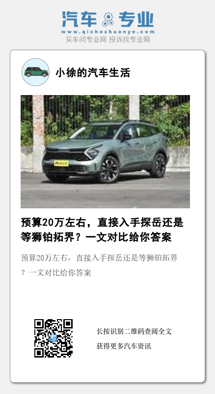 探岳(图片|配置|询价)作为一汽大众旗下主销的SUV车型,受到了不少持币待购消费者的关注,而狮铂拓界(图片)作为韩系产品序列比较新的产品,同样引起了不少消费者的注意。那么手握20万左右的预算,直接入手探岳还是等等即将上市的狮铂拓界?今天咱们针对这个问题来好好聊聊。