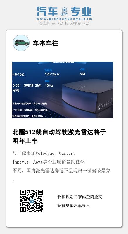 接下来,如果北醒的量产规划能如期达成,或将成为首个正式上车的512线级产品,车规级激光雷达行业的技术竞争由此也将进入一个全新的高度。