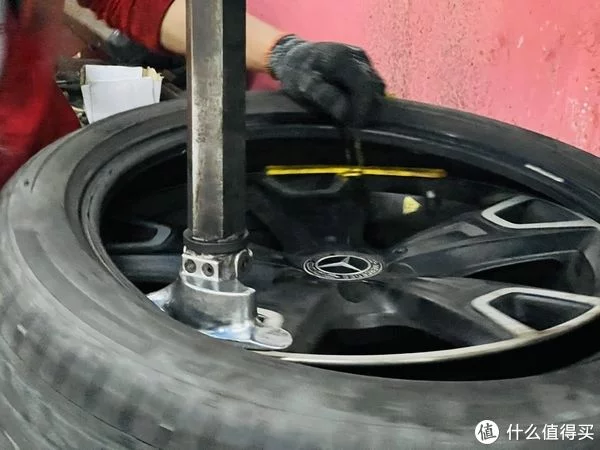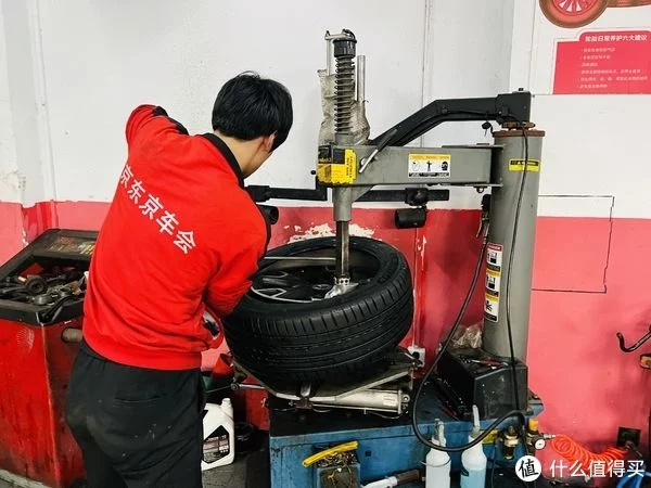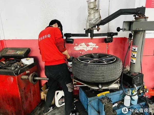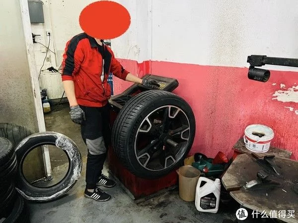 小哥熟练的装新轮胎,正反面的问题,他们是不会搞错的