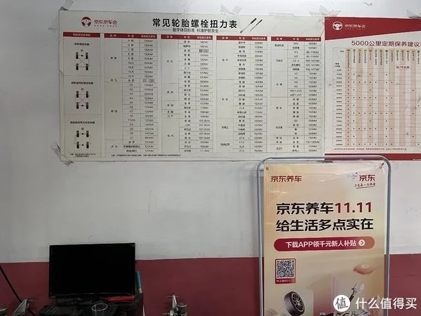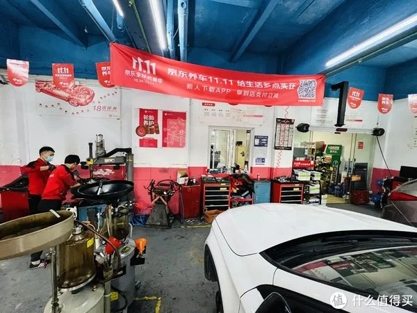 轮胎从其他城市调货送到上海门店,目前上海仅1家,好在离我家不远。轮胎送达后,提前一天电话联系,约定安装时间。第二天,按照约定的时间达到京东线下门店。一共3个维修工位,加上1个洗车位。