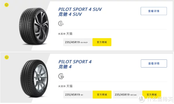 PS4 235/45R19 在米其林官网,我看到还有一款SUV 专用型号,参数为95V,(最大载重为690kg,极限设计时速250KM/H)。SUV 型号的价格卖的最贵,因为它是防爆胎,产地沈阳米其林。