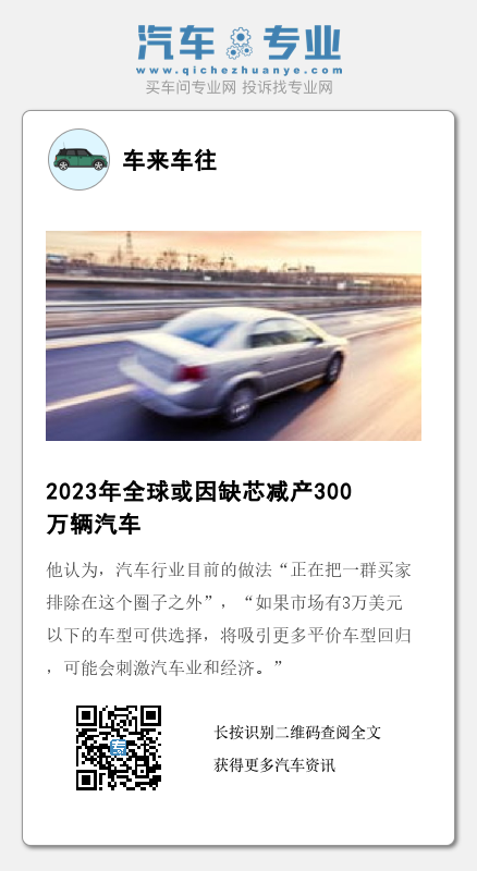 AFS:2023年全球或因缺芯减产300万辆汽车