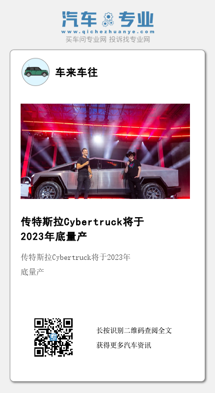 据外媒报道,两位知情人士透露,特斯拉计划在2023年底开始大规模生产Cybertruck,这距离特斯拉首席执行官马斯克2019年公布的最初投产目标已有两年时间。