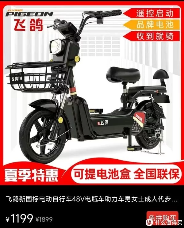 经过在网络平台上对比了一下,我选择了两个牌子:新大洲本田电动车与飞鸽 都是48伏电池,都在国标的标准之内。不过看着飞鸽功能要稍微多一点比如左右转向灯,遥控启动。车框是金属的。但是新大洲的电动车看着还是小巧一些。刚准备在某东下单的时候竟然没有货。后来还是在某多下单买了飞鸽。