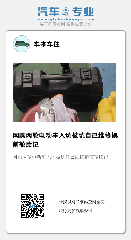 第一个问题:前胎漏气。每两三天要打上一次气。这是真空胎。找了一个修理铺,人家师傅随便看一下。说找不到有东西扎在上面,直接给灌一瓶补胎液进去。收了十五块钱。
