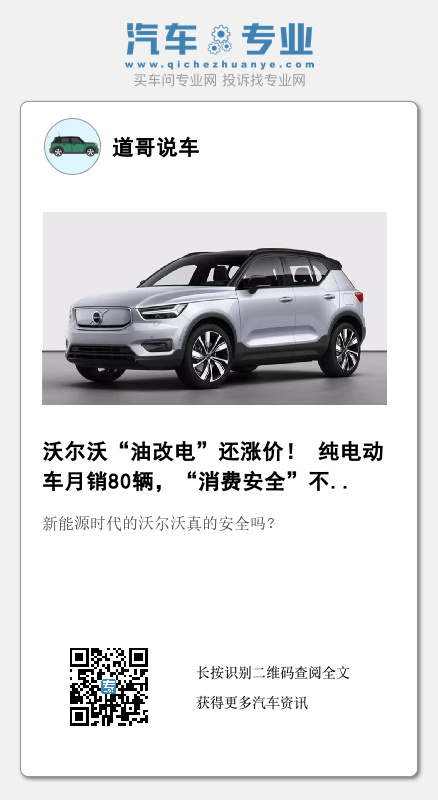 以此来看,沃尔沃的新能源车销量表现较差也就不难理解了。不过,令人担忧的是,沃尔沃的新能源车型若一直表现如此,何谈“全面电气化”?更令人担忧的是,“安全”或许救不了新能源汽车时代的沃尔沃。