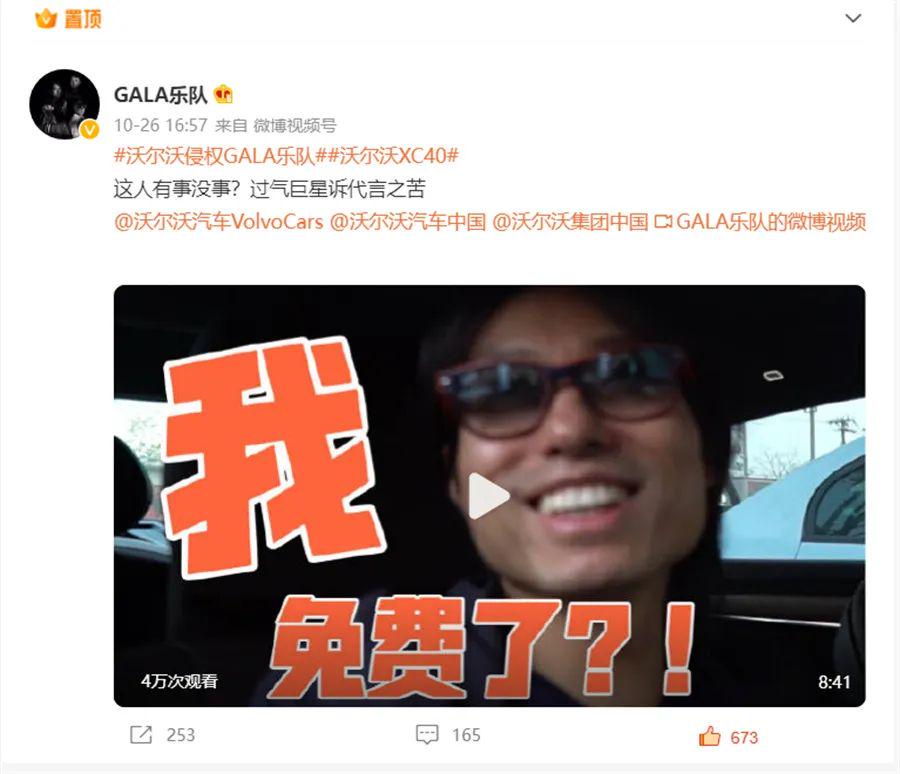 事情发酵半个多月,可能迫于舆论压力,11月3日21:34分,沃尔沃官微发声明,此前因代理公司的工作失误及沃尔沃方面的监管不力,造成了对GALA乐队一首音乐作品的侵权。公司已第一时间下架该侵权内容,目前正在与版权方积极沟通,寻求妥善处理方案。同时,公司也会在今后的传播工作中,加强知识产权管理,完善审查流程。