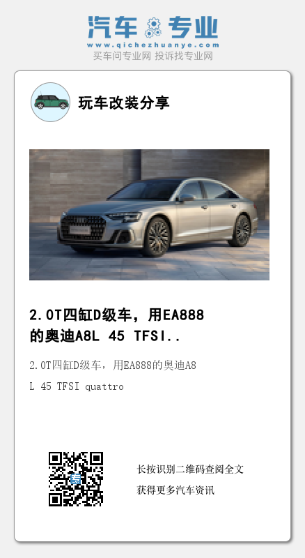 奔驰全新一代AMG C63采用4缸发动机成为了一个话题,另一半有一款D级行政轿车,也静悄悄地推出了4缸型号了,说的就是全新奥迪A8(图片|配置|询价)L 45 TFSI quattro车型。