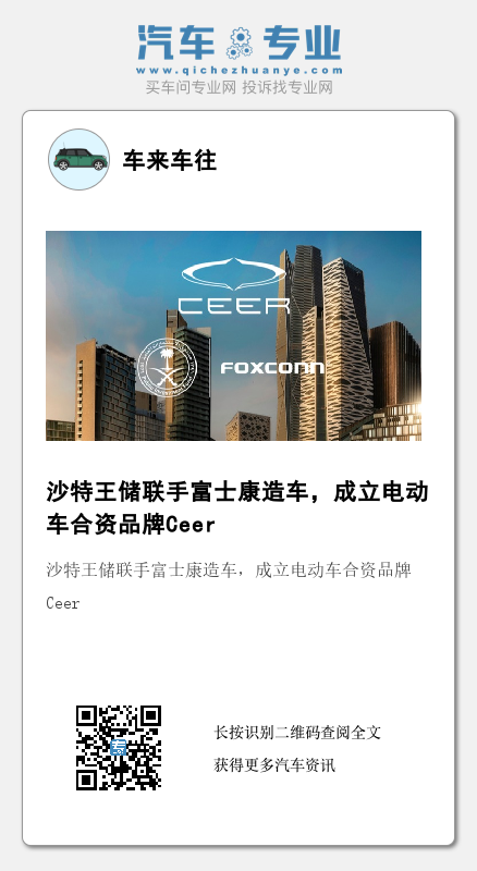 根据PIF的声明,富士康董事长刘扬伟表示,“我们将利用富士康的技术专长来支持Ceer的愿景,即围绕智能网联、信息娱乐和自动驾驶等主题打造一系列标志性的电动汽车。”他补充称,“我们希望让电动汽车成为主流,这也是Ceer在沙特和更广泛地区要实现的目标。”