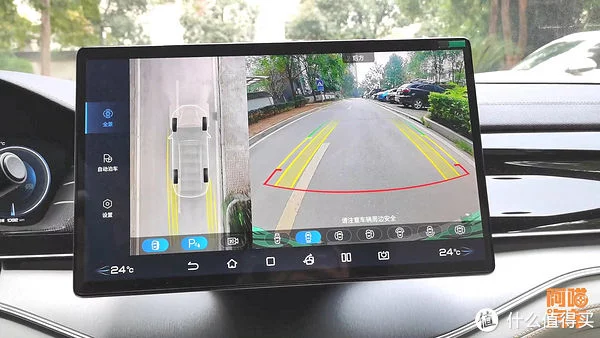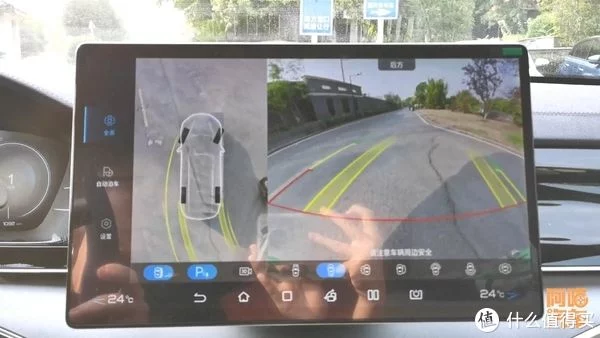 就这个透明底盘,中间这一部分车底的东西,全部都是通过影像合成过来的,它这个合成的素质,以及它反应的实时程度呢,就跟你车子的车机处理水平有很大的关系。