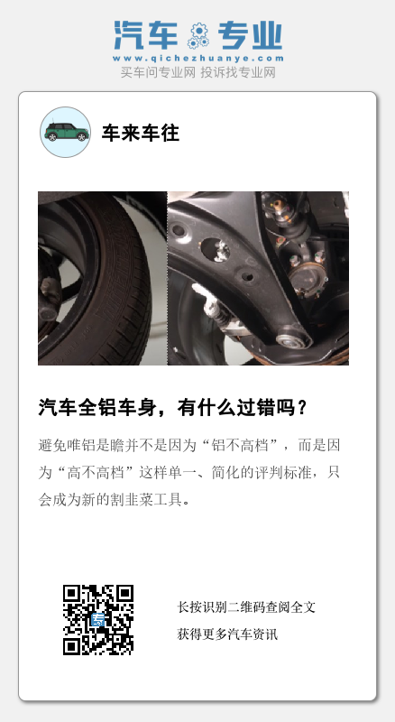 一方面,底盘钢制部件刷涂银色防腐漆其实并不鲜见,“装铝”板子打得未免冤枉;而另一方面,所谓房子钢筋与车用铝材间的类比,也确实没什么可比价值。铝有铝的高级,钢有钢的道理。