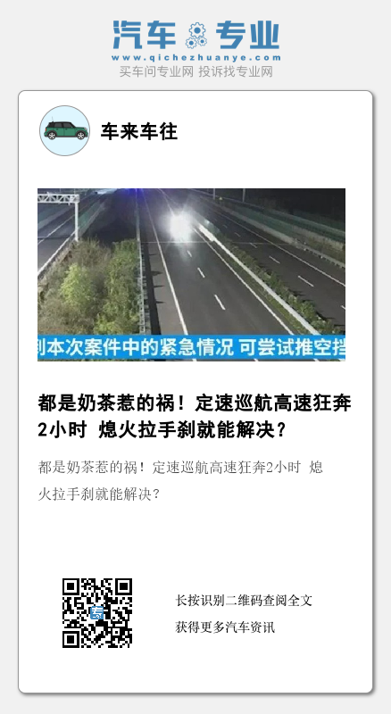 对于任何一个开过车的人,看完这条新闻都会汗毛倒竖。高速路,时速120公里,定速巡航无法关闭,狂奔2个小时,我们根本无法想象车主当时的绝望。但面对这么一条可怕的新闻,我们其实最想问的是两个问题:到底为什么会出现这么可怕的故障?要是万一我们自己遇到了类似状况,应该如何处理?