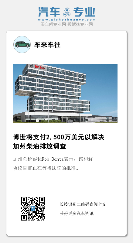 此前,博世同意向美国的大众和菲亚特克莱斯勒柴油车型车主支付超过4,000万美元,以解决各州检察长对柴油车排放造假丑闻的索赔。