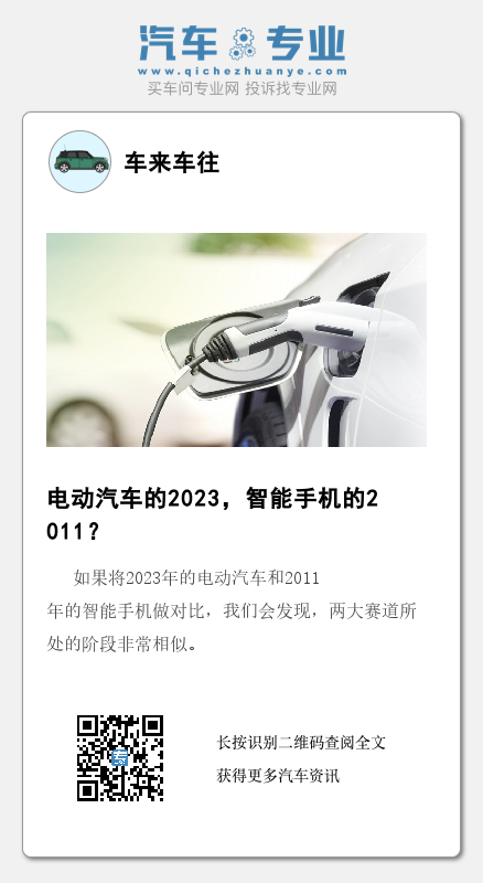 如果将2023年的电动汽车和2011年的智能手机做对比,我们会发现,两大赛道所处的阶段非常相似。在当下市场一片悲观下,2023年之后的电动汽车,是否会复刻智能手机当年的演进过程?