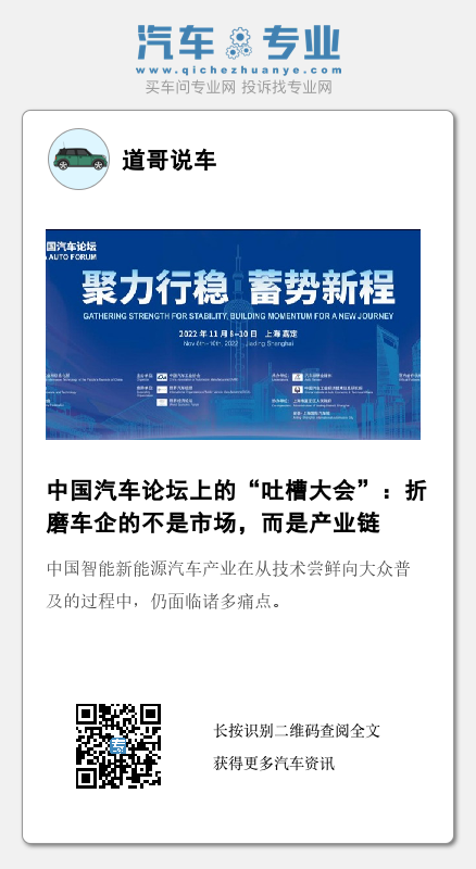 【文/道哥说车 听风吟】每逢汽车产业相关论坛,措辞犀利的针砭时弊,慷慨激昂的指点江山,鉴往知来的行业研判总是能够为中国汽车行业的发展,提供更优质的发展思路。但一个有意思的现象是,近年来,汽车行业面临着供应链不稳定、疫情反复等影响,渐渐地,车企们在各大论坛中争相吐槽的情况也并不少见。