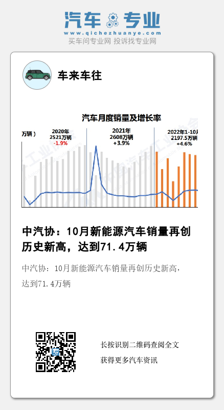 中汽协分析指出,10月产销环比小幅下降,说明受疫情多发散发等影响,终端市场承压;而同比依然保持增长势头,主要是车辆购置税减征政策的持续发力。