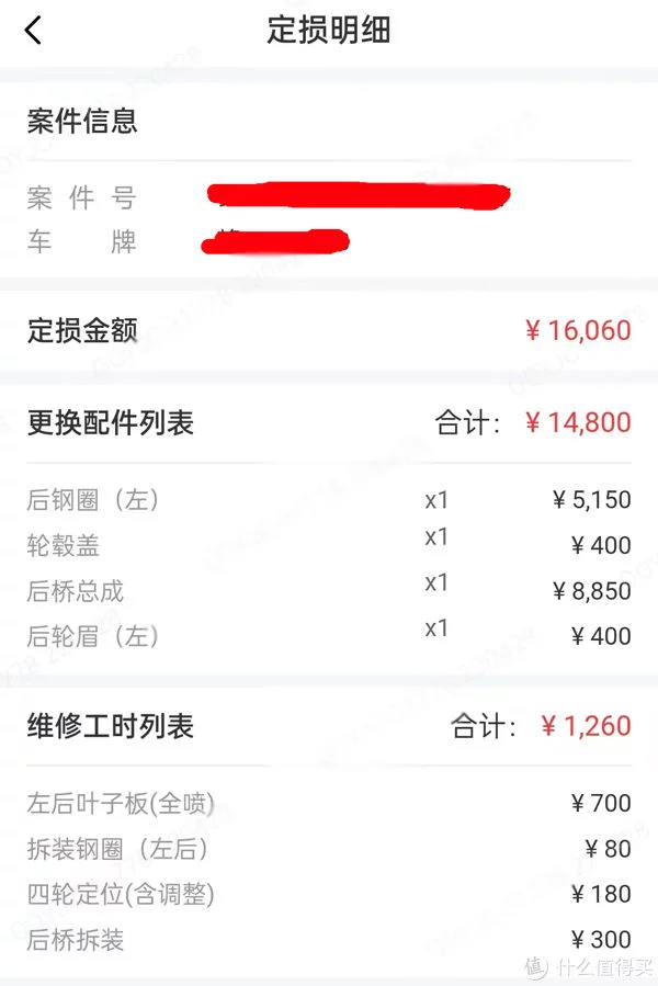 这次原本以为就是钣金喷漆,结果撞的位置不好,柱脚蹭到了轮毂,轮毂轻微变形要更换,后来做四轮定位发现后桥也有轻微形变,只能更换后桥了。