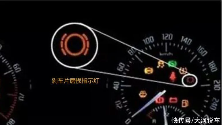 当刹车片磨损指示灯亮起时,表示刹车片快到磨损极限值了。