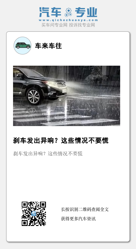 如果是新车或刚换刹车片,那么出现这种情况很可能是因为刹车片和刹车盘还没得到充分的磨合,所以有时会发出一些轻微的摩擦声。只要车辆再开上一段时间,异响就会消失。